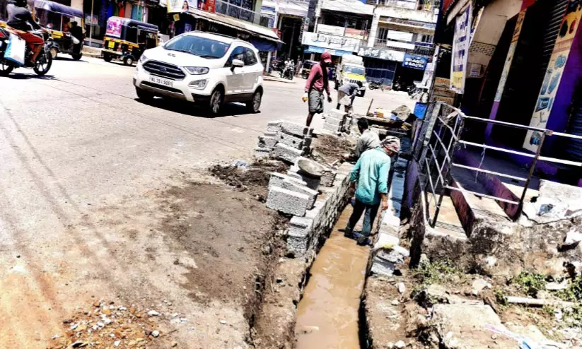 വെള്ളറട ജങ്ഷനിൽ കട ഉടമയും നാട്ടുകാരും ചേര്ന്ന് ഓട നിർമാണം ആരംഭിച്ചപ്പോള്