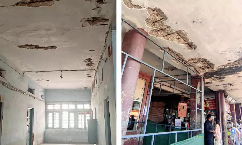 കോൺക്രീറ്റ് പാളികൾ അടർന്ന് അപകടാവസ്ഥയിലായ കൊല്ലം കെ.എസ്.ആർ.ടി.സി ബസ് സ്റ്റാൻഡ്