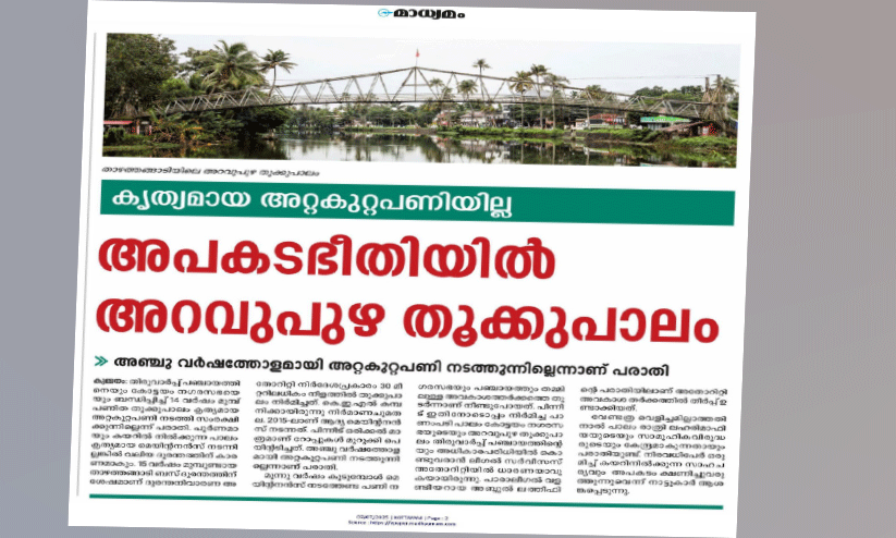 പാണംപടി പാലം നഗരസഭയുടെയും അറവുപുഴ പാലം പഞ്ചായത്തിന്റെയും അധികാരപരിധിയിൽ കൊണ്ടുവരാൻ ധാരണയാവുകയായിരുന്നു. 2015ലാണ് ആദ്യ അറ്റകുറ്റപ്പണി നടന്നത്. പിന്നീട് ഒരിക്കൽ കൂടി അറ്റകുറ്റപ്പണി നടന്നു. അറ്റകുറ്റപ്പണി കൃത്യമായി നടക്കാത്തതിനാൽ അബ്ദുൽ ലത്തീഫ് വീണ്ടും പരാതി നൽകി. നാട്ടുകാരും വിവിധ സംഘടനകളും പ്രതിഷേധവുമായി രംഗത്ത് എത്തിയിരുന്നു.