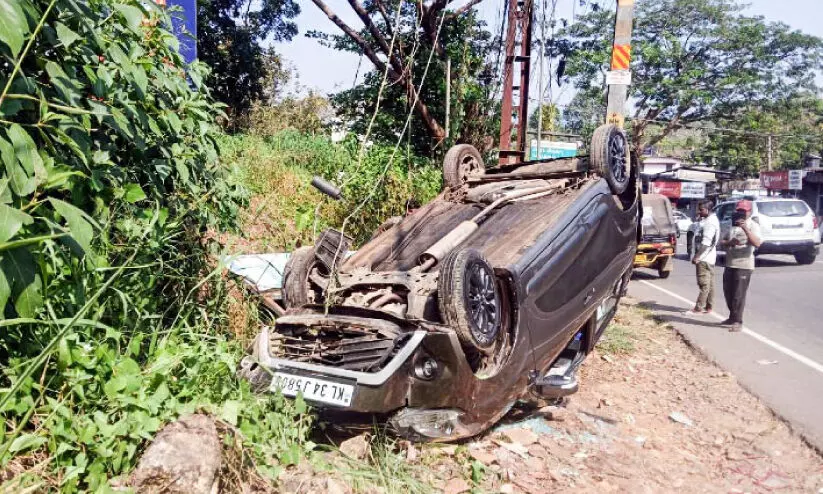 ദേശീയ പാതയിൽ 26ാം മൈലിൽ തലകീഴായി മറിഞ്ഞ കാർ