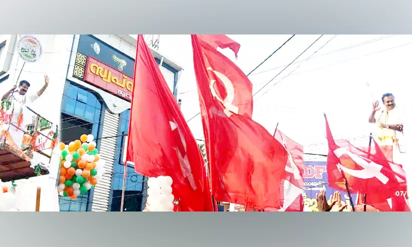 എൽ.ഡി.എഫ് സ്ഥാനാർഥി അഡ്വ. ജോബ് മൈക്കിളും പ്രവർത്തകരെ അഭിവാദ്യം ചെയ്യുന്നു.