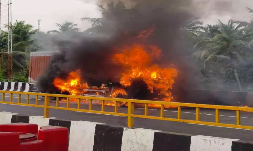 പന്തീരാങ്കാവ്: ടോൾ പ്ലാസയിൽ നിർത്തിയിട്ട കണ്ടയിനർ ലോറിക്ക് തീപിടിച്ചു. മഹാരാഷ്ട്ര ഭാഗത്ത് നിന്ന ആലുവയിലേക്കാണ് പോകുകയായിരുന്ന ലോറിയാണ് അഗ്നിക്കിരയായത്. ടോൾ പ്ലാസക്ക് സമീപം പാർക്ക് ചെയ്ത് ഡ്രൈവർ പ്രാഥമിക കാര്യങ്ങൾക്കായി ഇറങ്ങിയ ശേഷം തിരിച്ച് വണ്ടിയിൽ കയറി സ്റ്റാർട്ട് ചെയ്യുമ്പോഴാന് കാബിനടിയിൽ നിന്നും തീ പുകഞ്ഞ് വരുന്നതായി ശ്രദ്ധയിൽ പെട്ടത്. നാഗാലാൻ രജിസ്ട്രേഷനുള്ള വണ്ടിയാണ് അഗ്നിക്കിരയായത്. മീഞ്ചന്ത, വെള്ളിമാട്കുന്ന് അഗ്നിശമന നിലയങ്ങളിലെ മൂന്ന് യൂനിറ്റ് വന്നാണ് തീ അണച്ചത്.