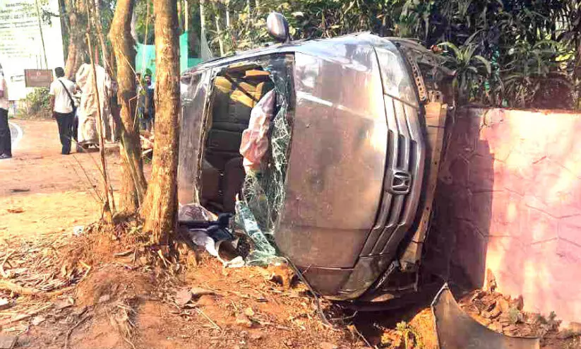 നടുവണ്ണൂർ ആഞ്ഞോളിമുക്കിന് സമീപം അപകടത്തിൽപെട്ട കാർ