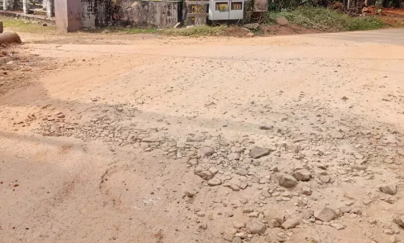 നിലവിൽ ജൽജീവൻ കുടിവെള്ള പദ്ധതി പ്രവൃത്തി ഏകദേശം പൂർത്തിയായെങ്കിലും റോഡ് പ്രവൃത്തി പുനരാരംഭിച്ചിട്ടില്ല. മഴക്കാലത്ത് ചെളിക്കുളമായിരുന്ന റോഡ് ഇപ്പോൾ കടുത്ത പൊടിശല്യത്താൽ വീർപ്പുമുട്ടുകയാണ്. വാഹനങ്ങൾ കടന്നുപോകുമ്പോൾ ഉയരുന്ന കടുത്ത പൊടി കാരണം റോഡരികിലെ വീടുകളിലും വ്യാപാര സ്ഥാപനങ്ങളിലും പള്ളികളിലും പൊടി നിറയുന്നത് ജനങ്ങളുടെ ദൈനംദിന ജീവിതത്തെ സാരമായി ബാധിച്ചിട്ടുണ്ട്.