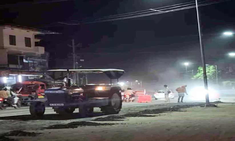 സംസ്ഥാന പാതയിൽ രാത്രി അറ്റകുറ്റപണി നടത്തുന്നു