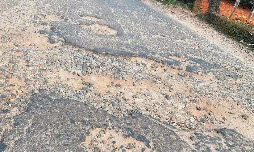 കുളങ്ങരത്ത്-അരൂർ-ഗുളികപ്പുഴ റോഡിൽ പൂമുഖത്തെ കുഴികൾ