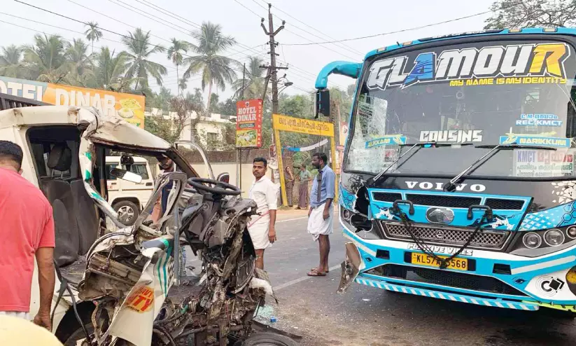 പടനിലം വളവിൽ വെള്ളിയാഴ്ച രാവിലെ ബസും മിനി ലോറിയും ഇടിച്ചുണ്ടായ അപകടം