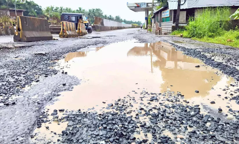 പയ്യോളി ടൗണിന് സമീപം വടകര ഭാഗത്തേക്കുള്ള സർവിസ് റോഡ് തകർന്ന നിലയിൽ