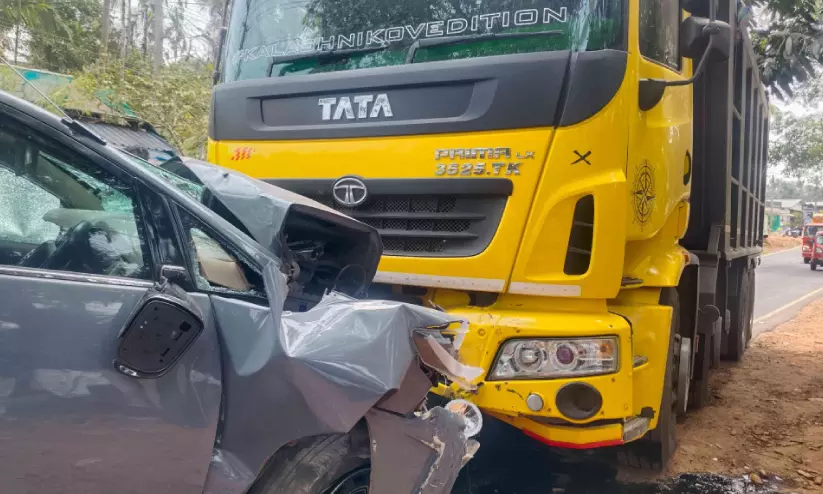 കൂത്താളിയിൽ അപകടത്തിൽപെട്ട കാറും ലോറിയും