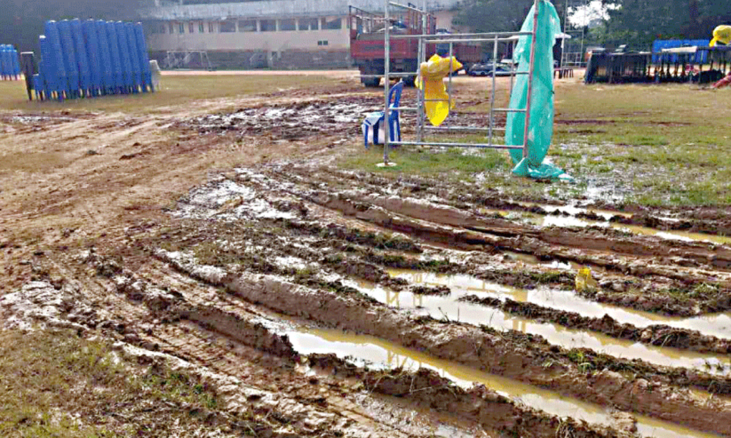 വാഹനങ്ങൾ ഉഴുതുമറിച്ച അരീക്കോട് പഞ്ചായത്ത് സ്റ്റേഡിയം