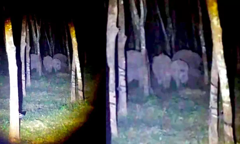 നെല്ലിക്കുത്ത് ജനവാസ കേന്ദ്രത്തിലിറങ്ങിയ കാട്ടാനക്കൂട്ടം