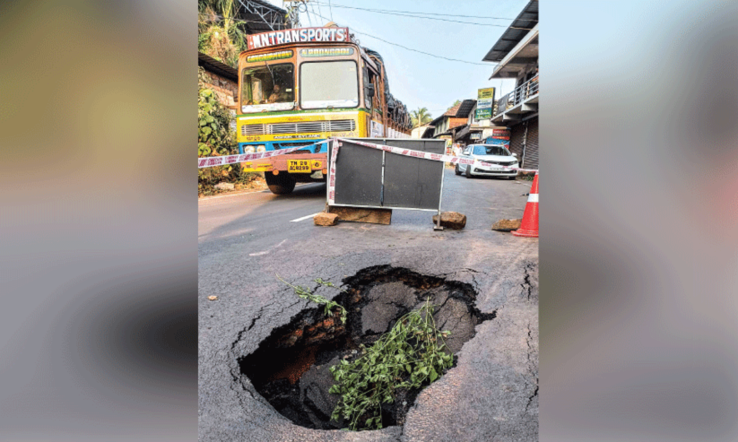 കുറുക്കോളി മൊയ്തീൻ എം.എൽ.എയുടെ ശ്രമഫലമായി അഞ്ച് കോടി 20 ലക്ഷം രൂപ അനുവദിച്ച് അത്യാധുനിക രീതിയിൽ നവീകരിച്ച റോഡ് ഫെബ്രുവരി 17നാണ് മന്ത്രി മുഹമ്മദ് റിയാസ് ഉദ്ഘാടനം ചെയ്തത്. പൈപ്പ് ലൈൻ സ്ഥാപിക്കുന്നതുമായി ബന്ധപ്പെട്ട് റോഡ് നവീകരണം ഏറെ വൈകിയത് വലിയ പ്രതിഷേധങ്ങൾക്കും വിവാദങ്ങൾക്കും ഇടയാക്കിയിരുന്നു. ഇതിന് തൊട്ടുപിന്നാലെയാണ് റോഡ് വീണ്ടും തകർന്നത്. അശാസ്ത്രീയ രീതിയിൽ പൈപ്പ് ലൈൻ സ്ഥാപിച്ചതും ആവശ്യമായ സ്ഥലങ്ങളിൽ എയർവാൾവ് സ്ഥാപിക്കാത്തതുമാണ് തുടർച്ചയായി ഈ റോഡിൽ പൈപ്പ് ലൈൻ പൊട്ടാൻ കാരണമെന്ന് നാട്ടുകാർ ആരോപിച്ചു. കൽപകഞ്ചേരി അങ്ങാടിയിൽ കുടിവെള്ള പൈപ്പ് ലൈൻ പൊട്ടിയതിനെത്തുടർന്ന് റോഡിൽ രൂപപ്പെട്ട ഗർത്തം
