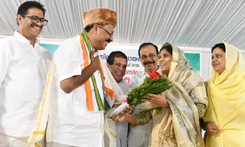 മലപ്പുറം ജില്ല പഞ്ചായത്ത് പ്രസിഡന്റായി ചുമതലയേറ്റ പി.എ. ജബ്ബാർ ഹാജിയെ മുൻ പ്രസിഡന്റ് എം.കെ. റഫീഖയും മുൻ വൈസ് പ്രസിഡന്റ് ഇസ്മയിൽ മൂത്തേടവും ചേർന്ന് അഭിനന്ദിക്കുന്നു. എം.എൽ.എമാരായ പി. അബ്ദുൽ ഹമീദ്, പി. ഉബൈദുല്ല, കെ.പി.സി.സി സെക്രട്ടറി ആലിപ്പറ്റ ജമീല തുടങ്ങിയവർ സമീപം