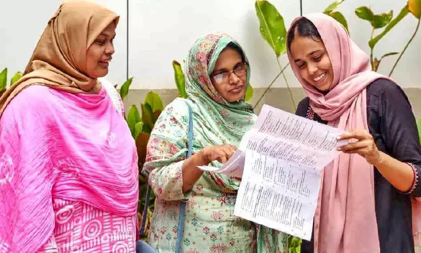 പരീക്ഷയെഴുതി പുറത്തുവന്നശേഷം സജ്ന സഹോദരി റജുല, മകൾ ഫാത്തിമ ഷിറിൻ എന്നിവർ ചോദ്യപേപ്പർ വിശകലനത്തിൽ