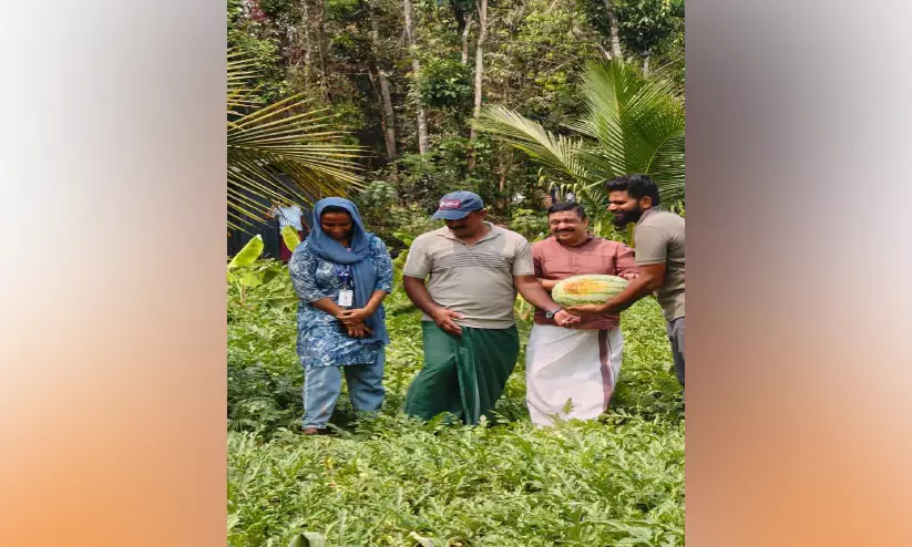 എടയാറ്റൂർ സ്കൂളിനു സമീപം തണ്ണിമത്തൻ വിളവെടുപ്പിന്റെ ഉദ്ഘാടനം നജീബ് കാന്തപുരം എം.എൽ.എ നിർവഹിക്കുന്നു