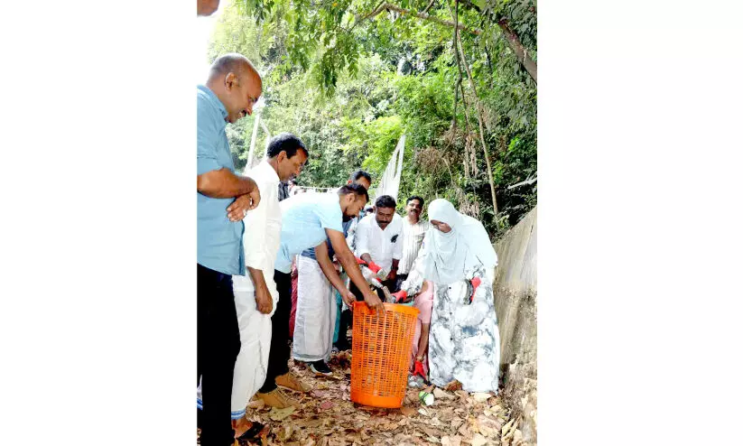 എക്കോ വേൾഡ് വേസ്റ്റ് മാനേജ്മെന്റിന്റെ നേതൃത്വത്തിൽ നാടുകാണി ചുരത്തിൽ നടത്തിയ ശുചീകരണ പ്രവൃത്തി ഗ്രാമപഞ്ചായത്ത് പ്രസിഡന്റ് റംലത്ത് നെയ്തക്കോടൻ ഉദ്ഘാടനം ചെയ്യുന്നു