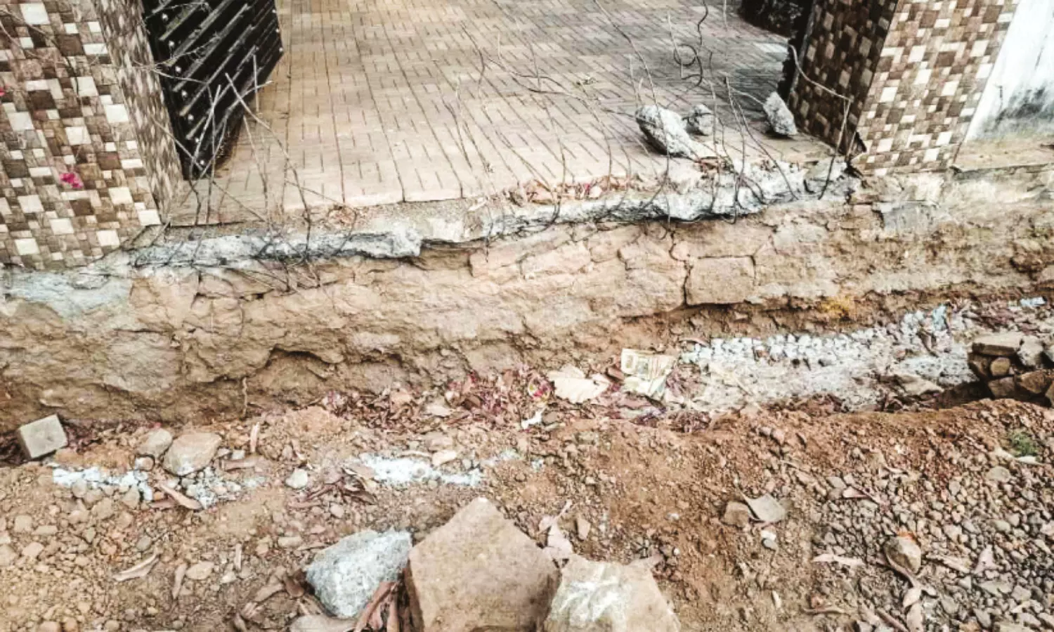 അരികുചാൽ നിർമാണത്തിന്റെ ഭാഗമായി വീട്ടിലേക്കുള്ള വഴിയിൽ കുഴിയെടുത്തപ്പോൾ