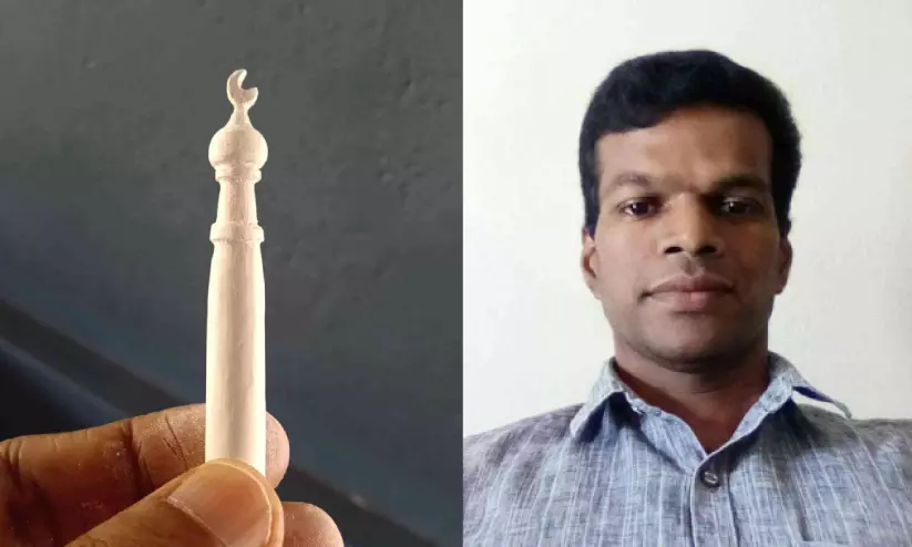 വേങ്ങര: ബോർഡിൽ എഴുതുന്ന ചോക്ക് കൊണ്ട് പള്ളി മിനാരം തീർത്ത് ചിത്രകലാധ്യാപകൻ സുബ്രഹ്മണ്യൻ. കണ്ണമംഗലം മേമാട്ടുപാറ സ്വദേശിയായ മേലേ വട്ടശ്ശേരി സുബ്രഹ്മണ്യൻ ശിൽപകലയിൽ വ്യത്യസ്തത പുലർത്തുന്ന കലാകാരനാണ്. വൈലോപ്പിള്ളിയുടെ മാമ്പഴം അടക്കമുള്ള ശിൽപങ്ങൾ കളിമണ്ണിൽ നിർമിച്ച് സുബ്രഹ്മണ്യൻ ശ്രദ്ധനേടിയിരുന്നു. ചെമ്പുകമ്പിയിൽ തീർത്ത ഗാന്ധി ശിൽപങ്ങളും ശ്രദ്ധിക്കപ്പെട്ടു.