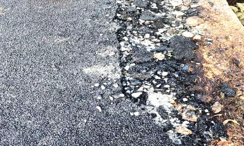 ഇടക്കുർശ്ശി പാത്തി പാലത്ത് നവീകരിച്ച റോഡ് കുത്തിപ്പൊളിച്ച നിലയിൽ