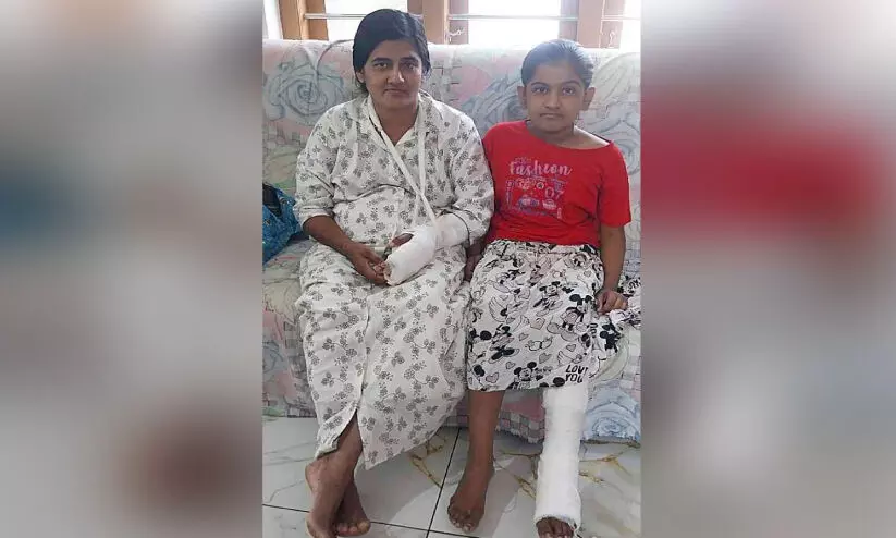 കൊല്ലങ്കോട്: തെരുവ് നായ്ക്കൾ ഓടിച്ചതോടെ സ്കൂട്ടർ നിയന്ത്രണം തെറ്റി യുവതിക്കും മകൾക്കും പരിക്ക്. കിഴക്കേത്തറ, ത്രാമണിയിൽ രതീഷിന്റെ ഭാര്യ രേഖ (35), റതിക (10) എന്നിവർക്കാണ് പരിക്കേറ്റത്. കൊല്ലങ്കോട് നെന്മേനി കിഴക്കേ പറമ്പിലായിരുന്നു അപകടം. അപകടത്തിൽ രേഖയുടെ കൈയിലെ വിരലുകൾ പൊട്ടി. മകളുടെ കാലിലും പരിക്കേറ്റു.