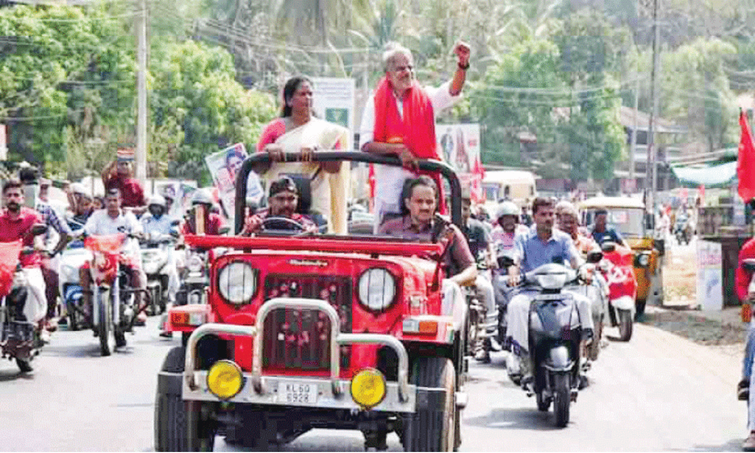 കോങ്ങാട് ടൗണിൽ എൽ.ഡി.എഫ് സ്ഥാനാർഥി എ. വിജയരാഘവൻ റോഡ് ഷോ നടത്തുന്നു
