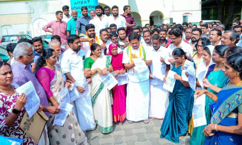 നഗരസഭക്ക് മുന്നിൽ സുമേഷ് അച്ചുതന്റെ നേതൃത്വത്തിൽ കക്കൂസ് മാലിന്യ പ്ലാന്റിന്റെ ഡി.പി.ആർ കത്തിക്കുന്നു