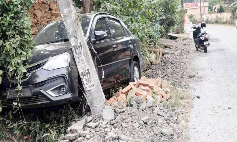 കോട്ടായി പെരുംകുളങ്ങരയിൽ നിയന്ത്രണംവിട്ട കാർ വൈദ്യുതി പോസ്റ്റിലിടിച്ചപ്പോൾ