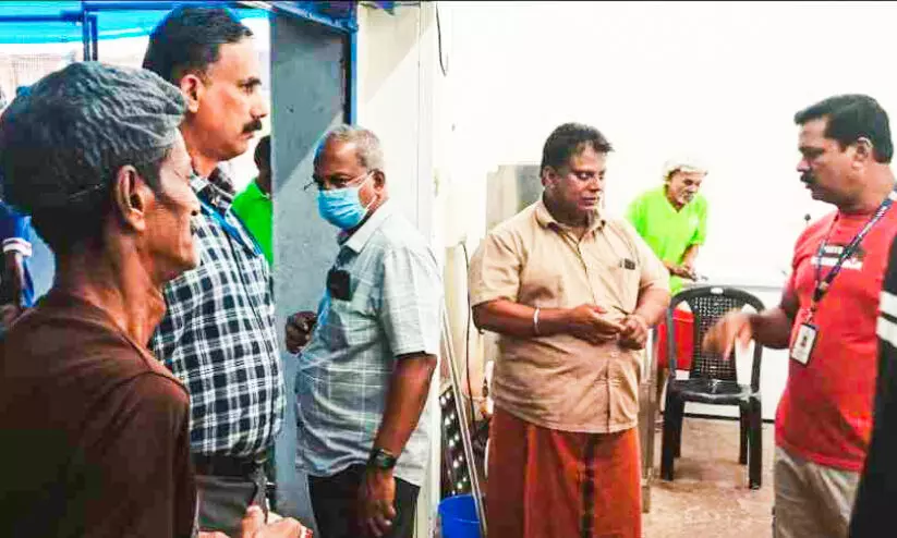 ആരോഗ്യ വകുപ്പ് അധികൃതർ പമ്പയിലെ വ്യാപാര സ്ഥാപനങ്ങളിൽ പരിശോധന നടത്തുന്നു