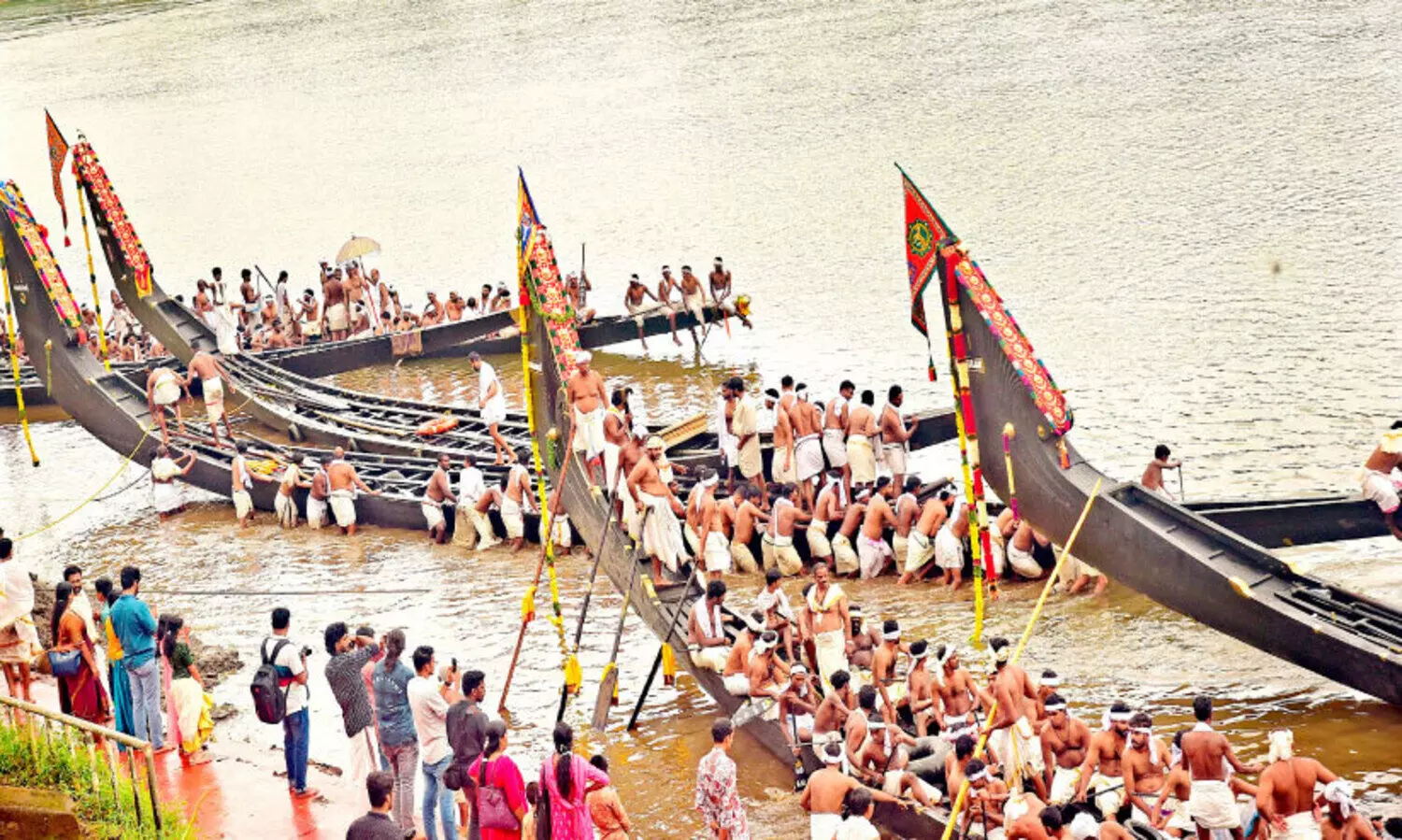 ആറന്മുള വള്ളസദ്യക്ക് പമ്പാനദിയിലെ ക്ഷേത്രക്കടവിൽ ഞായറാഴ്ച രാവിലെ വിവിധ കരകളിലെ പള്ളിയോടങ്ങൾ എത്തിയപ്പോൾ