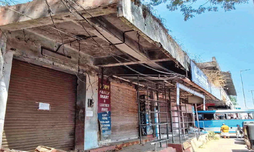 ബലക്ഷയം കാരണം പൊളിച്ചുനീക്കാൻ പന്തളം നഗരസഭ ഭരണസമിതി തീരുമാനമെടുത്ത പഴയ ഷോപ്പിങ് കോംപ്ലക്സ് കെട്ടിടം