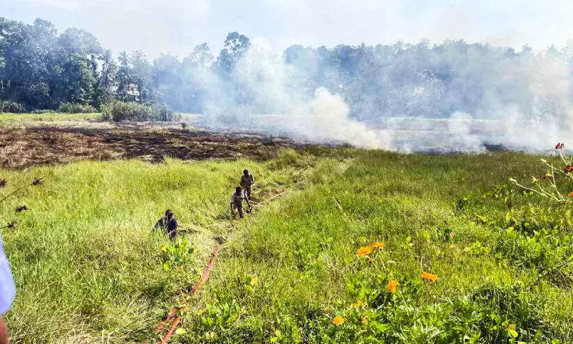 കുറ്റൂരിലെ ഞെക്കണ്ണ് പാടശേഖരത്തിന് തീപിടിച്ചപ്പോൾ