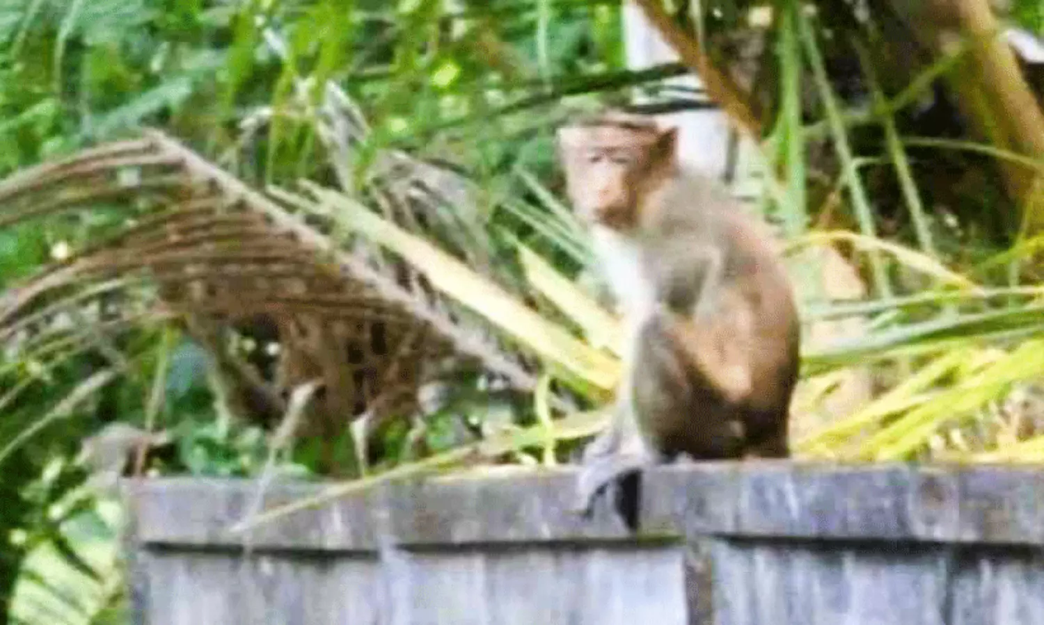 കാടുകുറ്റിയിൽ കാട്ടിൽ നിന്ന് എത്തിയ കുരങ്ങുകളിലൊന്ന്