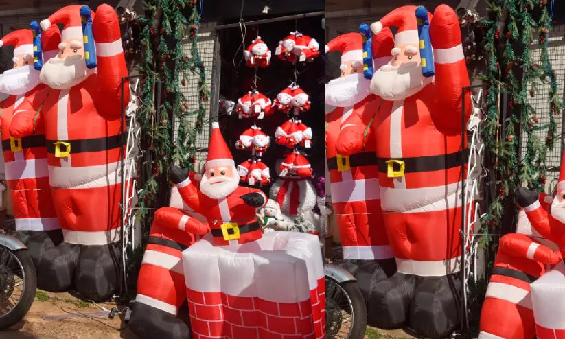 തൃശൂർ ഹൈ റോഡിലെ കേരള ഫാൻസി ഷോപ്പിൽ വിൽപനക്കായി എത്തിച്ച ‘കാർണിവൽ’ സാന്റയും ‘കുഴിമന്തി’ സാന്റയും