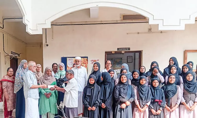 ‘മാധ്യമം’ ഹെൽത്ത് കെയറിനായി എറിയാട് വിമൻസ് അറബിക് കോളജ് വിദ്യാർഥികൾ സ്വരൂപിച്ച തുക പി.ഡി. അബ്ദുറസാഖ് മൗലവി ‘മാധ്യമം’ പ്രതിനിധി ടി.എം. കുഞ്ഞുമുഹമ്മദിന് കൈമാറുന്നു