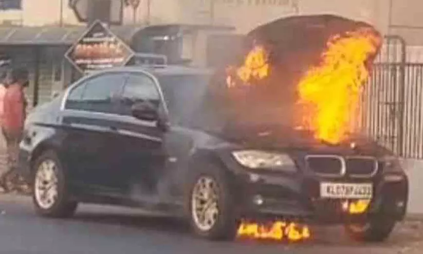 കുന്നംകുളത്ത് ഓടിക്കൊണ്ടിരിക്കെ കാറിന് തീപിടിച്ചപ്പോൾ