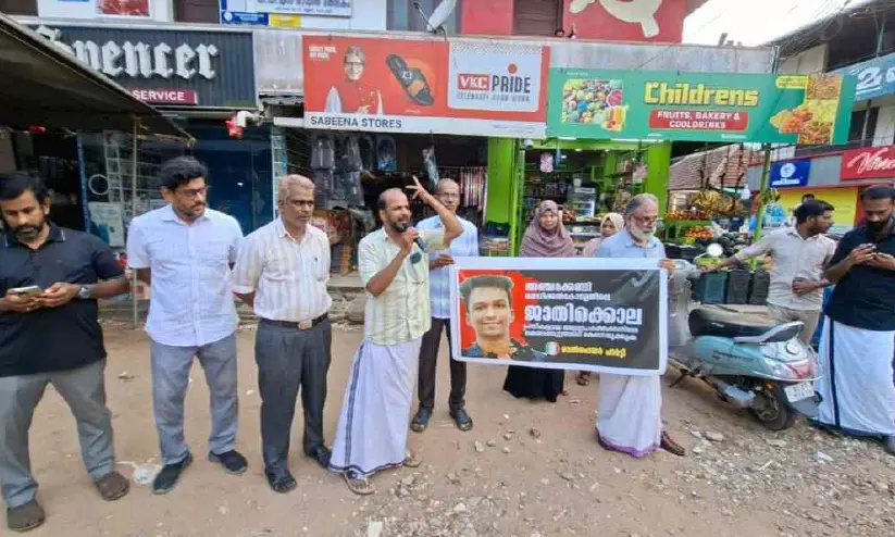 മതിലകം: അഞ്ചരക്കണ്ടി മെഡിക്കൽ കോളജിലെ ജാതിക്കൊലക്കെതിരെ വെൽഫെയർ പാർട്ടി മതിലകം പഞ്ചായത്ത് കമ്മിറ്റി പ്രതിഷേധം സംഘടിപ്പിച്ചു. മെഡിക്കൽ കോളജിലെ അധ്യാപകരെ ജോലിയിൽനിന്ന് പിരിച്ചുവിട്ട് കൊലക്കുറ്റത്തിന് ജയിലിൽ അടക്കണമെന്നും യോഗം അവശ്യപ്പെട്ടു. ജില്ല വൈസ് പ്രസിഡന്റ് കെ.കെ. ഷാജഹാൻ ഉദ്ഘാടനം ചെയ്തു. റഫി വൈപ്പീസ് അധ്യക്ഷത വഹിച്ചു.