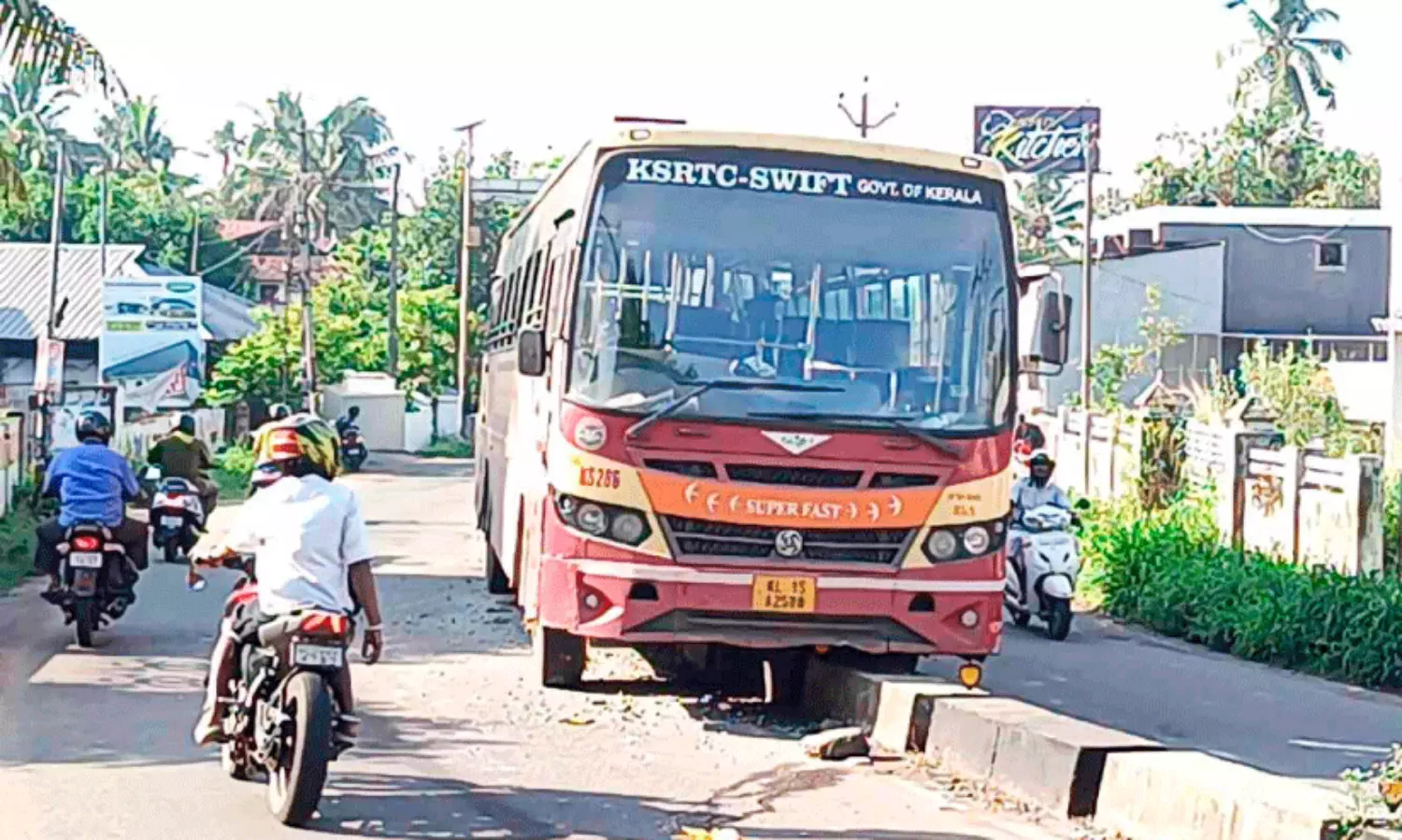 തലോറില് ഡിവൈഡറില് ഇടിച്ചുകയറിയ കെ.എസ്.ആര്.ടി.സി സ്വിഫ്റ്റ് ബസ്