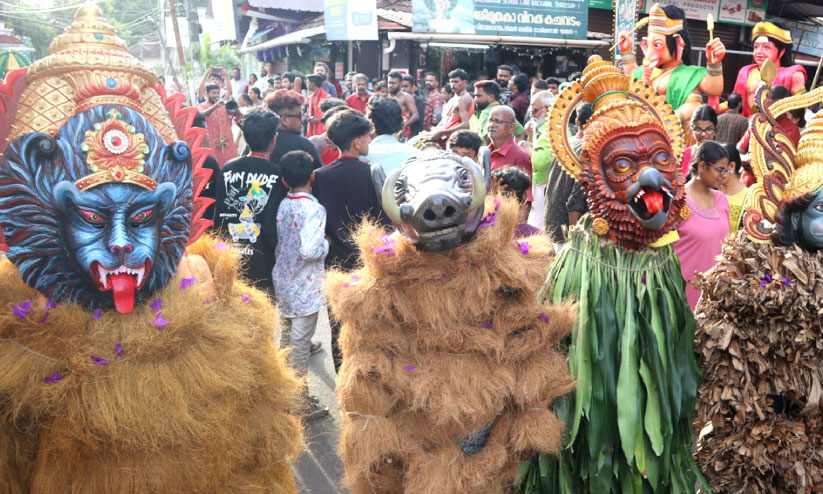 ഉച്ചക്ക് ഒന്നരയോടെ പനമുക്കംപിള്ളി ശ്രീധർമ ശാസ്താ ക്ഷേത്രാങ്കണത്തിൽനിന്നാണ് കുമ്മാട്ടികളുടെ ദേശംചുറ്റൽ ആരംഭിക്കുക. രാത്രി ഏഴിനാണ് സമാപനം. നിശ്ചലദൃശ്യങ്ങളും തെയ്യം, തിറ, തംബോലം, ശിങ്കാരി മേളം, നാസിക്ഡോൾ, ദേവനൃത്തം, പ്രച്ഛന്നവേഷങ്ങൾ തുടങ്ങിയവ ഘോഷയാത്രയിലുണ്ടാകും. നാലോണ നാളിലേക്കുള്ള പുലികളിക്കും ഒരുക്കം തകൃതിയായി.