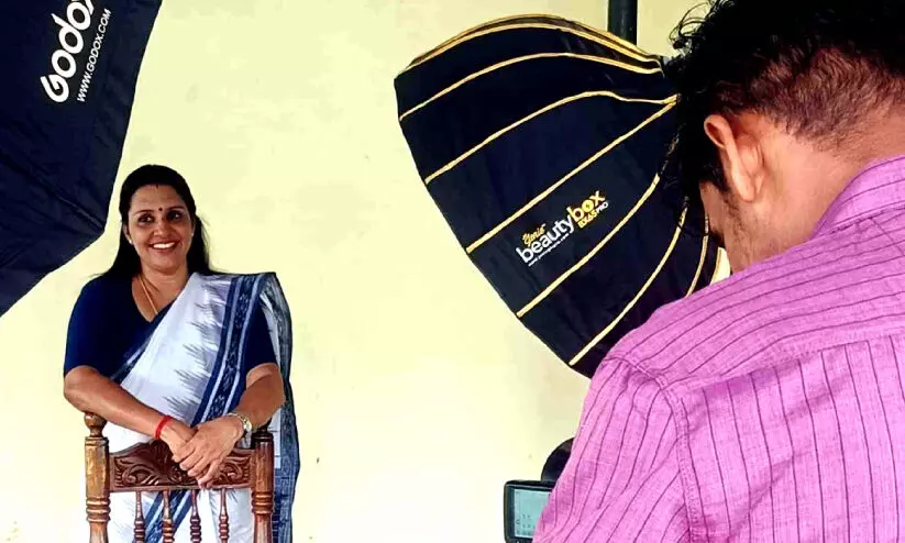 ഫ്രീലാൻസ് ഫോട്ടോഗ്രാഫർ അഖിലേഷ് ആർ.നായർ സ്ഥാനാർഥിയുടെ ചിത്രം പകർത്തുന്നു