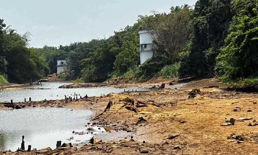 വറ്റിയ വാമനപുരം നദിയും ജല അതോറിറ്റിയുടെ പമ്പിങ് കിണറുകളും