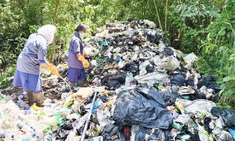 ഞായറാഴ്ച മുതൽ രാത്രികാലങ്ങളിൽ ലോറികളിലായാണ് ഇവിടെ തള്ളിയത്. ട്രെയിനിന്റെ എ.സി കമ്പാർട്ട്മെന്റുകളിൽ ഉപയോഗിക്കുന്ന ബെഡ്ഷീറ്റുകളും റെയിൽ നീർ അടക്കമുള്ള കുടിവെള്ള കുപ്പികളും ഭക്ഷണ അവശിഷ്ടങ്ങൾ, പ്ലാസ്റ്റിക് മാലിന്യങ്ങൾ അടക്കമാണ് നിക്ഷേപിച്ചത്. രൂക്ഷമായ ദുർഗന്ധം കാരണം നാട്ടുകാർ പരാതിയുമായെത്തിയതോടെ നഗരസഭയിലെ ആരോഗ്യ വിഭാഗം ജീവനക്കാരെത്തി മാലിന്യങ്ങൾ തരംതിരിച്ചിട്ടു.