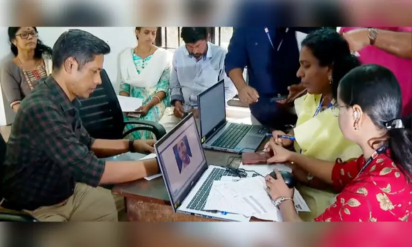 എസ്.ഐ.ആർ ഹിയറിങ്ങിന് തിരുവനന്തപുരം കവടിയാർ വില്ലേജ് ഓഫിസിലെത്തിയ മുഖ്യതെരഞ്ഞെടുപ്പ് ഓഫിസർ രത്തൻ യു. ഖേൽക്കർ