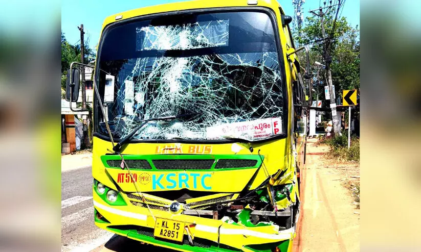 ബുധനാഴ്ച രാവിലെ ഒന്പതിന് എം.സി റോഡില് വെമ്പായത്തിന് സമീപം മഞ്ചാടിമൂട്ടിലായിരുന്നു അപകടം. രണ്ട് ബസുകളും തിരവനന്തപുരത്തേക്ക് പോവുകയായിരുന്നു. മുന്പെ പോവുകയായിരുന്ന ഫാസ്റ്റ് പാസഞ്ചര് ബസ് മഞ്ചാടിമൂട്ടില് നിര്ത്തി ആളെ ഇറക്കുന്നതിനിടെ പിന്നാലെ വന്ന ലിങ്ക് ബസ് ഇടിച്ച് കയറുകയായിരുന്നു. ഇടിയുടെ ആഘാതത്തില് ലിങ്ക് ബസിന്റെ മുന് വശത്തെ ഗ്ലാസ് പൂര്ണമായും തകര്ന്നു.
