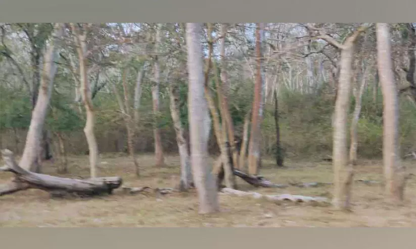 വരണ്ടുണങ്ങിയ മുതുമല കടുവ സങ്കേതത്തിലെ വനമേഖല