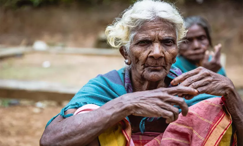 വയനാട്ടിലെ പണിയ ഗോത്ര വർഗത്തിലെ ഒരു സ്ത്രീ