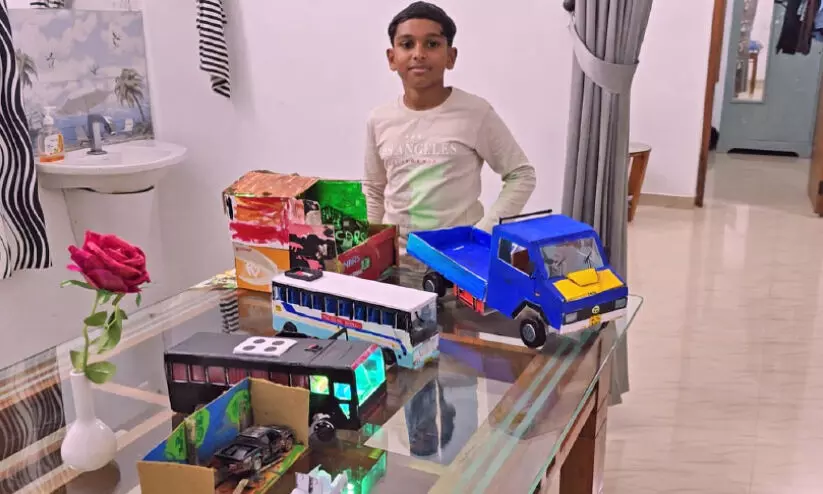 മാനന്തവാടി: പാഴ് വസ്തുക്കളിൽനിന്ന് വാഹനങ്ങളുടെ മിനിയേച്ചറുകൾ നിർമിച്ച് മാനന്തവാടി എം.ജി.എം സ്കൂൾ എഴാം ക്ലാസ് വിദ്യാർഥി മാർട്ടിൻ നഥാൻ (12) ശ്രദ്ധേയനാകുന്നു. ഒമ്പതാം വയസ്സിൽ കടലാസുകൊണ്ട് ജീപ്പ് നിർമിച്ചായിരുന്നു തുടക്കം. പിന്നീട് ഇതൊരു ഹരമായി.