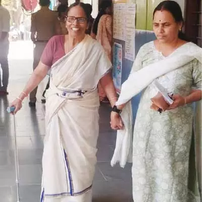 ഭിന്നശേഷി സ്ത്രീ ബൂത്തിലേക്ക് പ്രവേശിക്കുന്നു