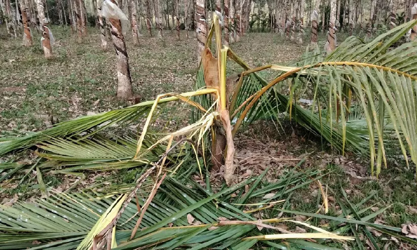 ഞായറാഴ്ച രാത്രിയും തിങ്കളാഴ്ച വെളുപ്പിനുമാണ് കല്ലൂർ, കല്ലുമുക്ക് പ്രദേശങ്ങളിൽ കാട്ടാന ഇറങ്ങി കൃഷി നശിപ്പിച്ചത്. പാമ്പാക്കടച്ചാലിൽ ഏലിയാസിന്റെ കൃഷിയിടത്തിൽ കയറിയ ആന നിരവധി തെങ്ങുകൾ തകർത്തു. നാട്ടുകാർ ബഹളം വെച്ചതോടെ ആന വനത്തിലേക്ക് മടങ്ങി.