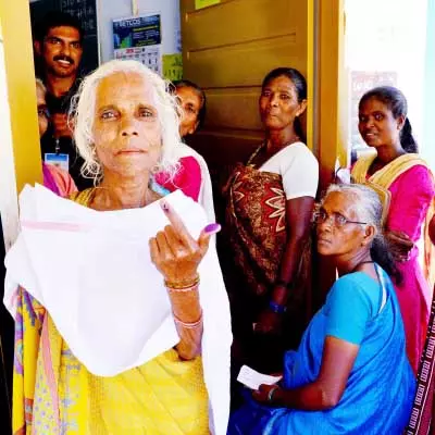 ചേകാടി ജി.എൽ.പി.സ്കൂളിലെ പോളിങ് ബൂത്തിൽ വോട്ടുചെയ്ത ആദിവാസി സ്ത്രീ