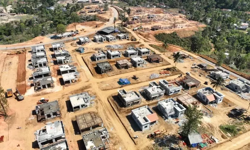 ഉരുൾ ദുരന്ത ബാധിതർക്കായി കൽപറ്റ ടൗൺഷിപ്പിൽ പുരോഗമിക്കുന്ന വീടുകളുടെ നിർമാണം